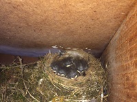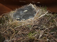 Das grösste Ereignis war aber, als 2 Jungvögel ihr Nest nicht verliessen, obwohl es ihr Alter eigentlich zugelassen hätte. Sie piepsten ganz laut nach den Eltern. Beim ersten Überblick sah es so aus, als wären die Jungvögel zusammen gewachsen und so nicht weg fliegen konnten. Die Jungen einfach so im Nest verhungern zu lassen wollten wir aber auch nicht. Wir zogen Gummihandschuhe an und holten, unter der strenger Beobachtung und Geschimpfe der Eltern, das Nest herunter. Danach war der Grund klar. Sie konnten das Nest gar nicht verlassen. Ihre Beine waren miteinander mit einem dünnen Faden umwickelt und mit dem Nest fest verbunden. Wir konnten den Faden entfernen und die Jungvögel flogen sofort weg.