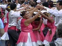 Am Vorabend der Hauptveranstaltung treffen sich Schulkinder auf dem ‘Praça do